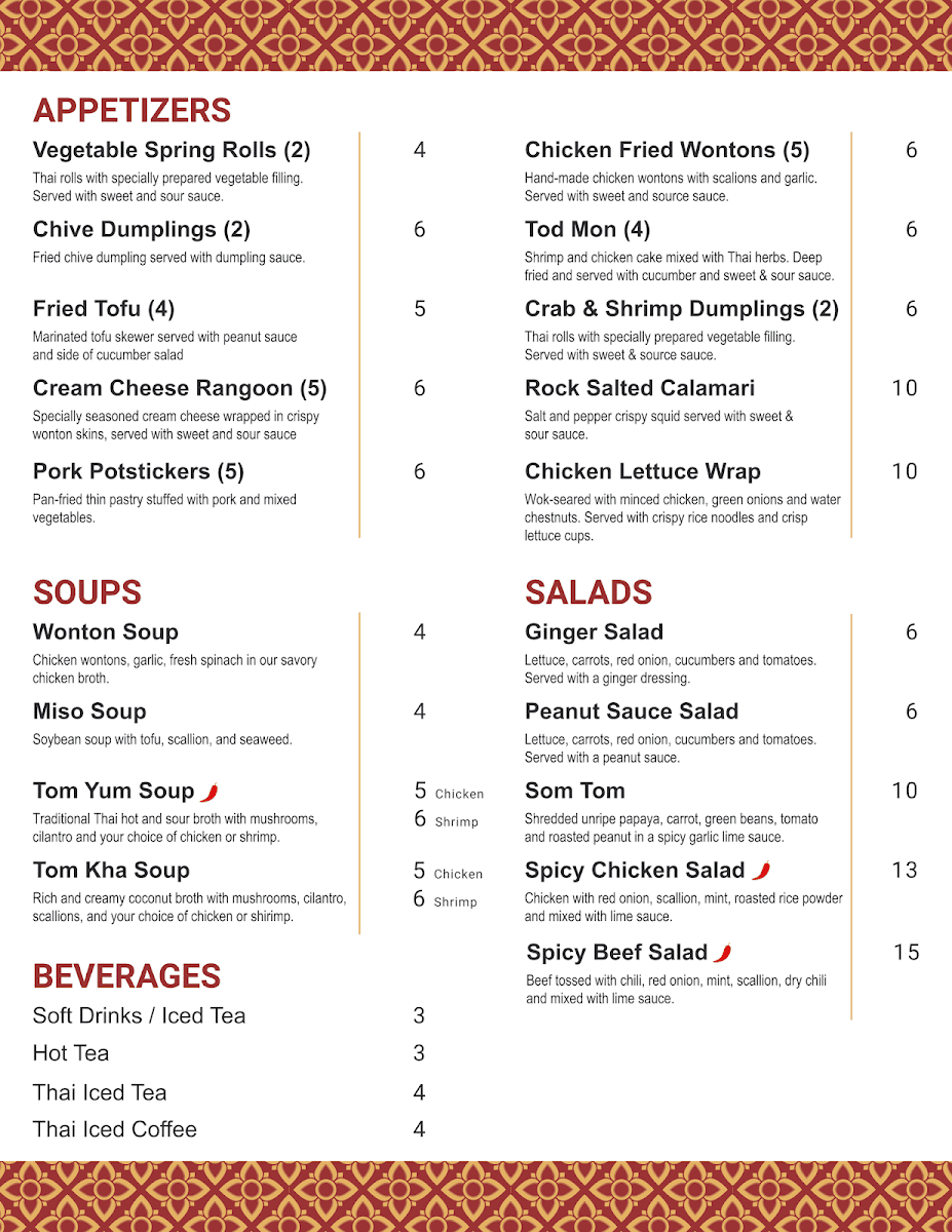 A Thai favorite- Stir-fried thin rice noodles with your choice of meat, egg, tofu, bean sprouts and green onions. Served with ground peanuts on the side.