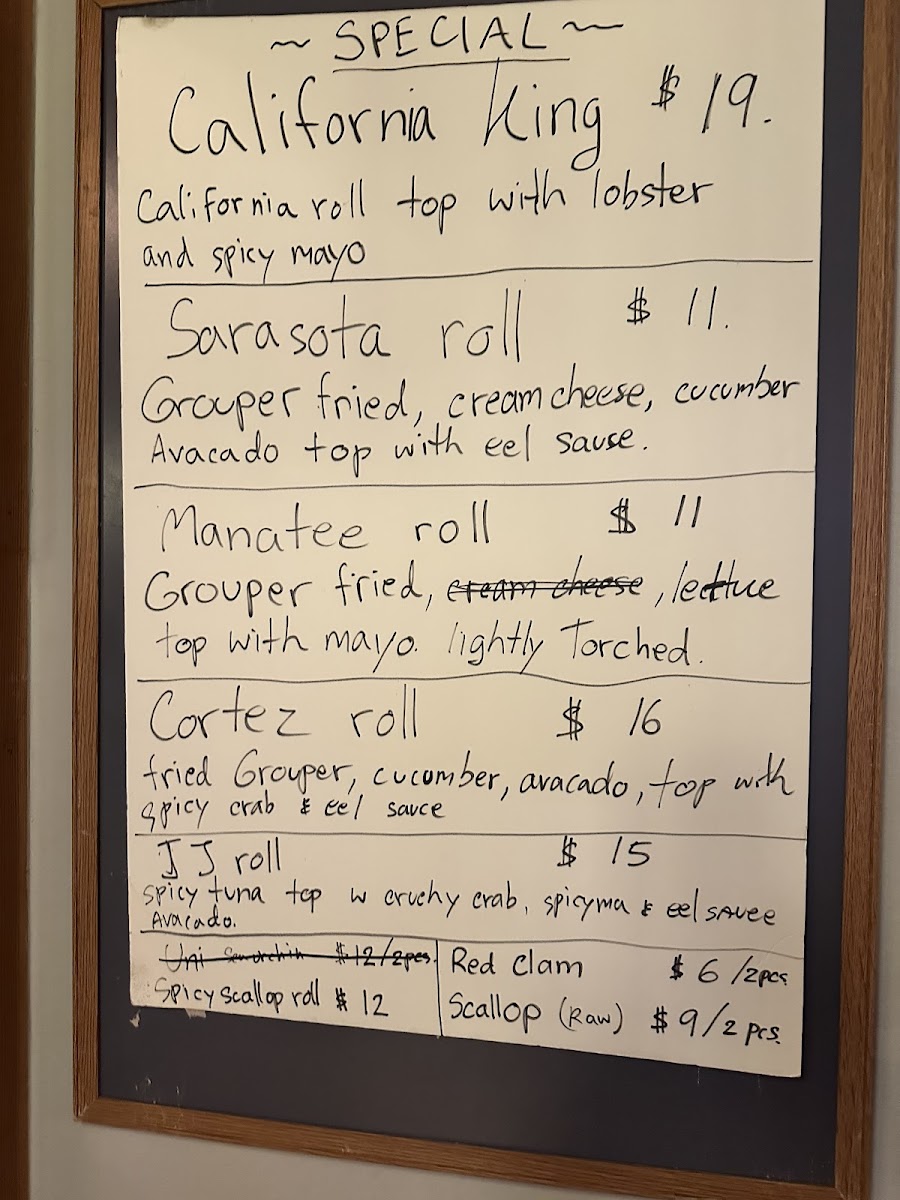 California roll, topped with spicy crab, conch, sesame seed, and sriracha sauce. Torched.